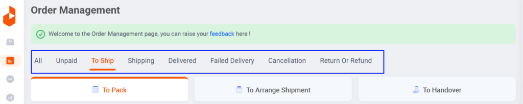 You will arrive at ‘Orders Overview‘ Page. Go to the relevant tab and export orders.